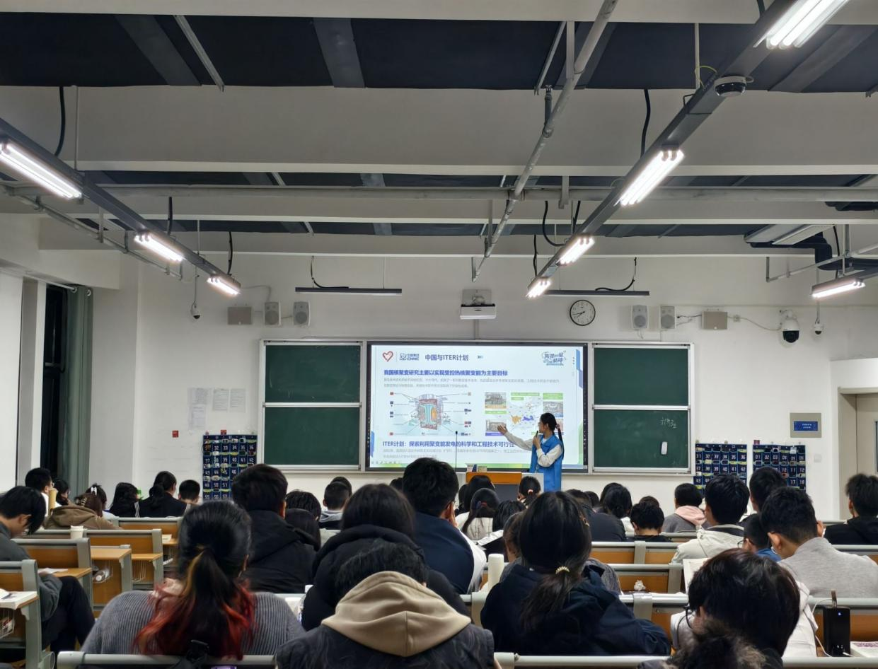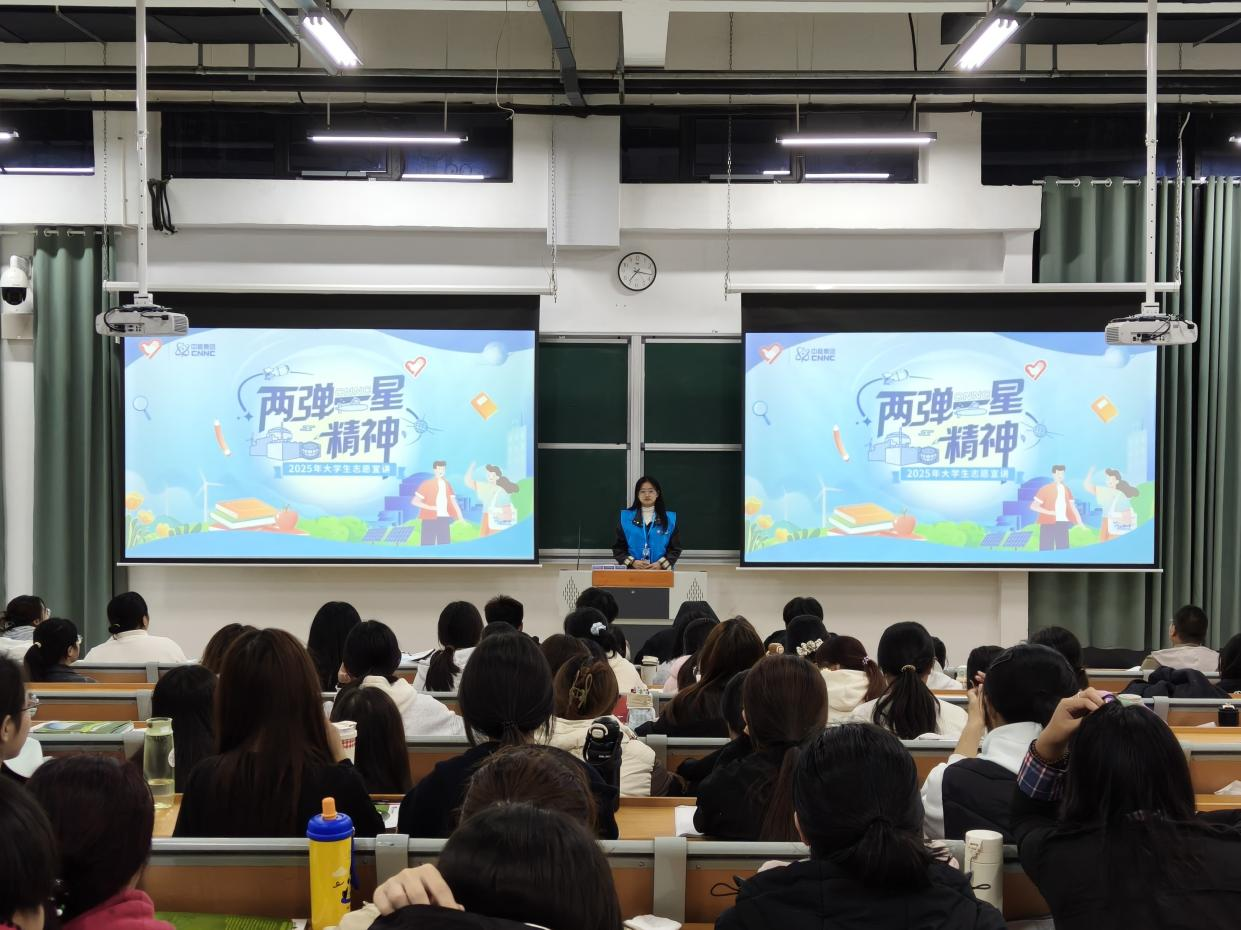 宣讲伊始,志愿者以“两弹一星”研制过程中的核辐射防护故事为切入点,生动还原了科研工作者在艰苦环境下,既要攻克核技术难关,又要科学应对辐射风险的奋斗场景。互动环节中,志愿者针对“日常辐射防护误区”“核医疗技术的安全性”等同学们关切的问题进行答疑,进一步拉近理论知识与专业实践之间的距离。同学们纷纷表示,此次宣讲既深化了对“两弹一星”精神的理解,也填补了核技术应用的知识空白,为今后专业学习与职业发展提供了新视角。
