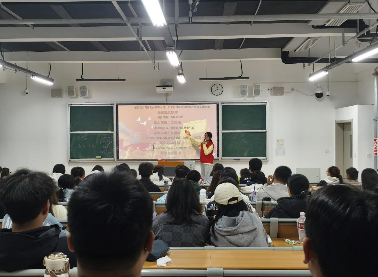 宣讲开始以“回溯历史+青春传承”为脉络展开,志愿者们结合历史影像与英雄事迹,讲述志愿军“保家卫国、向死而生”的壮烈故事,宣讲志愿者以细腻的叙事和饱满的情感,将“祖国和人民利益高于一切”的志愿军精神具象化。宣讲过程中,互动提问环节宣讲志愿者不断抛出问题,同学们踊跃举手作答,现场观点碰撞间,红色精神的时代价值被进一步诠释。字句铿锵间,不仅是青春对英雄的致敬,更是对“传承”二字的践行。