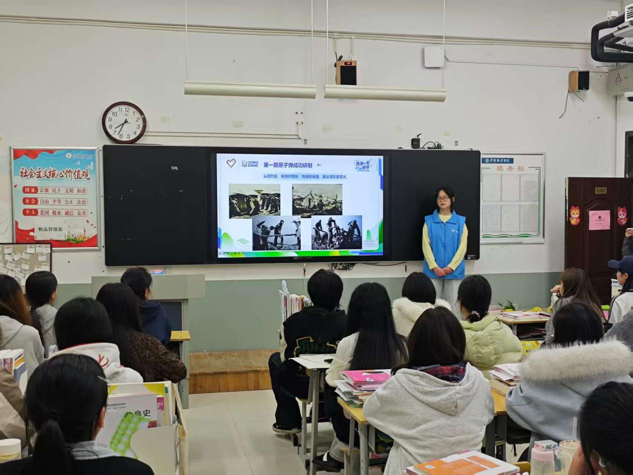 活动开始,宣讲团成员结合珍贵史料、生动案例和亲身感悟,从“两弹一星”工程的历史背景、艰难历程、辉煌成就三个维度展开宣讲。他们深情讲述了钱学森、邓稼先、郭永怀等老一辈科学家放弃国外优渥条件,毅然归国投身国防建设的感人故事。宣讲过程中,一幅幅泛黄的老照片、一段段震撼人心的历史片段,让现场师生仿佛穿越时空,真切感受到了老一辈科学家们的科学精神。互动环节中,宣讲团成员与学生们就“新时代如何传承两弹一星精神”“青年学生如何将个人理想融入国家发展”等问题展开热烈交流,耐心解答学生们的疑惑,引导大家从历史中汲取奋进力量。