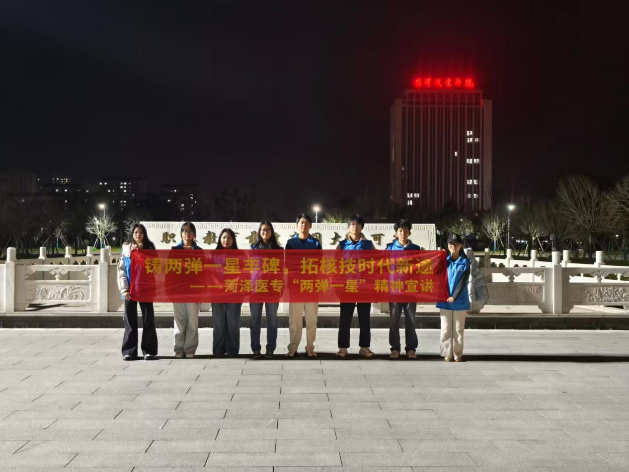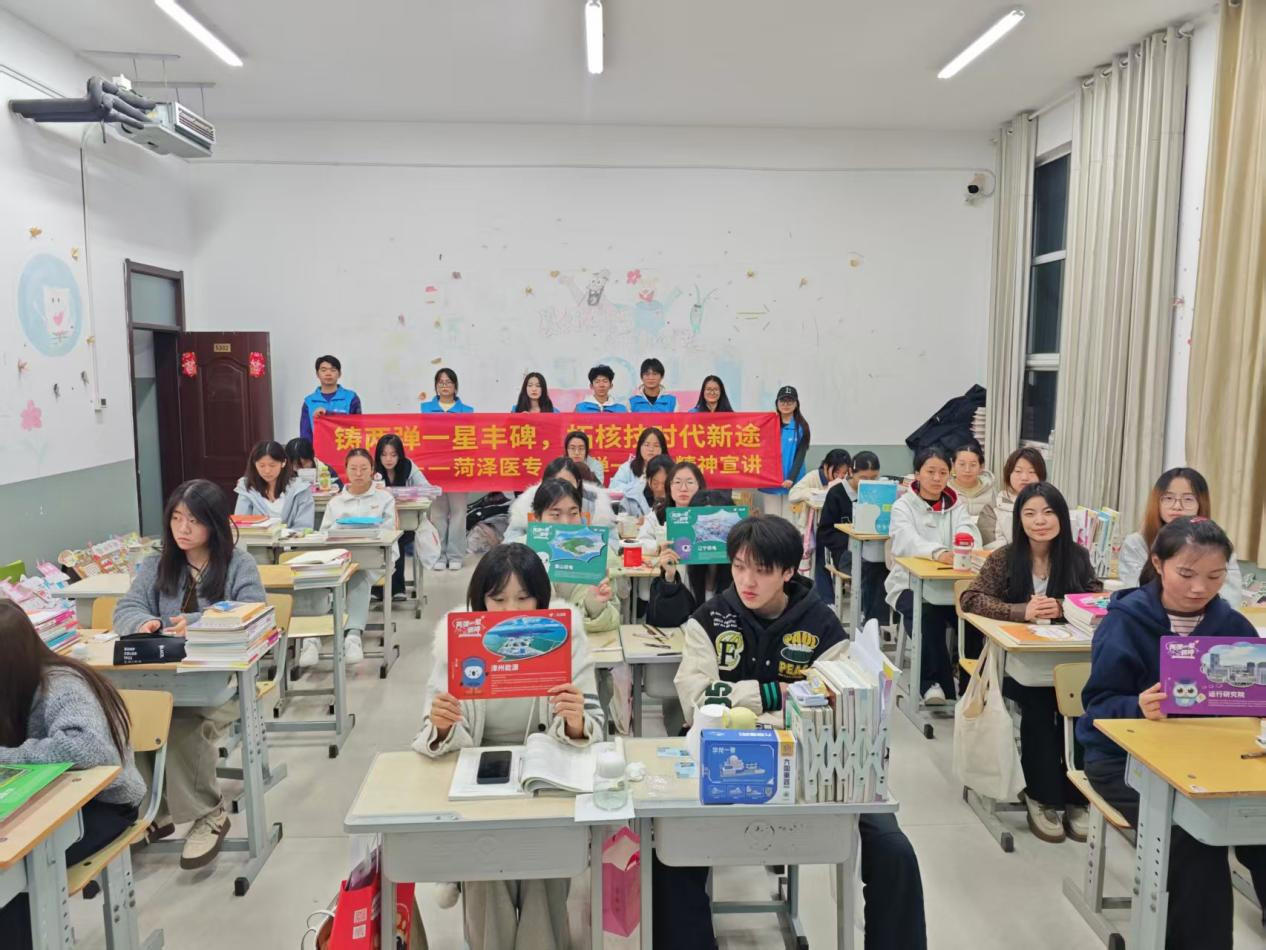 为深入学习贯彻习近平新时代中国特色社会主义思想,厚植青年学生爱国情怀,传承红色基因,临床医学系梦马志愿者服务队红色筑梦宣讲团于2025年11月12日晚前往菏泽职业学院,进行了一场以“弘扬两弹一星精神 争做时代奋进青年”为主题开展专题宣讲活动。