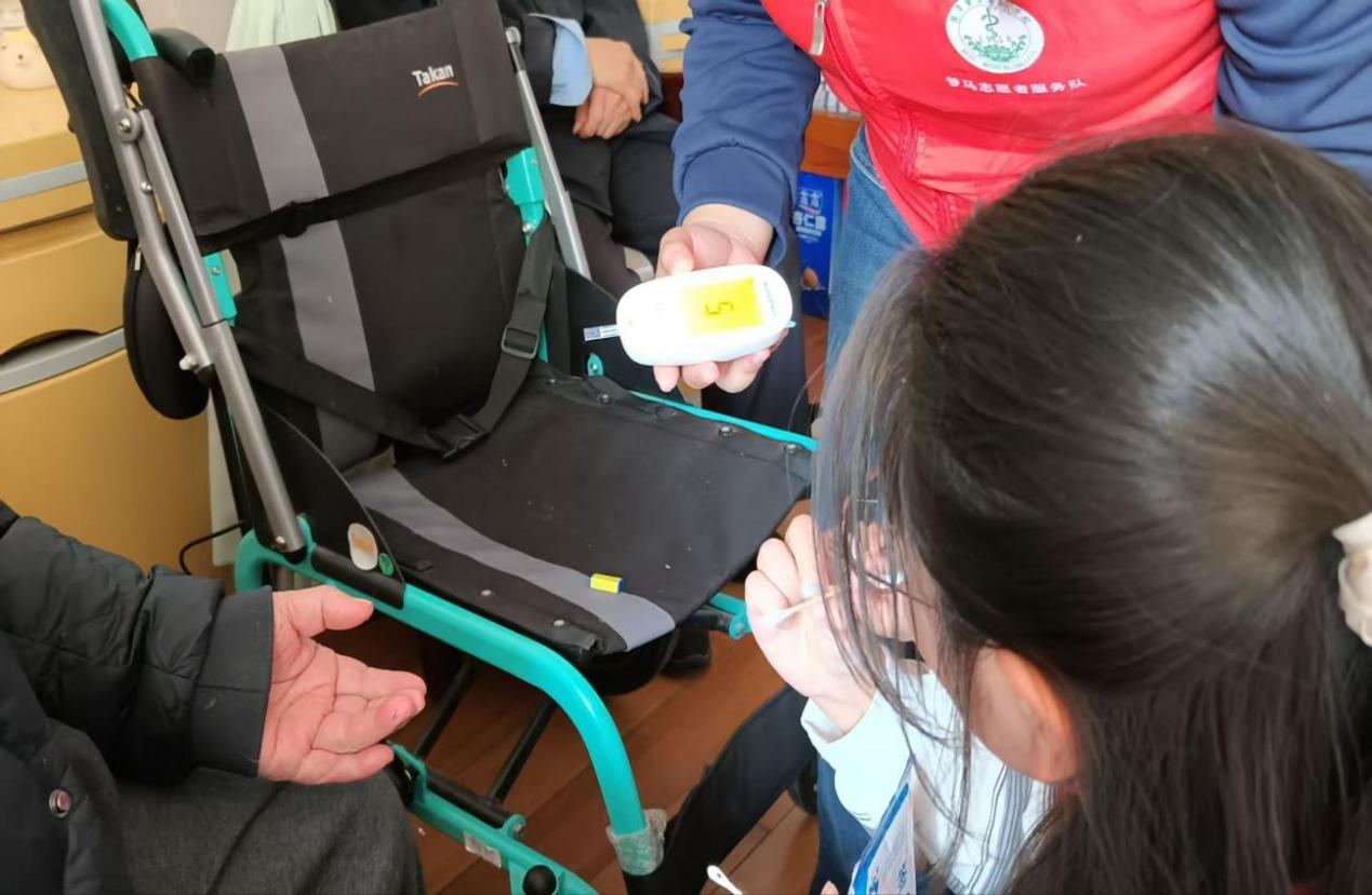 本次活动以健康关怀为核心。初期,部分老人对血糖检测心存顾虑。志愿者们敏锐察觉后,迅速调整沟通策略,从“准医生”转变为耐心的倾听者与科普者。他们围坐老人身旁,以“拉家常”的方式了解老人的日常生活,并用通俗易懂的语言讲解血糖管理的意义,逐步打消了老人的疑虑,最终赢得了他们的信任,顺利完成了血糖筛查工作。随后,志愿者们通过轻松的折纸互动,进一步拉近了与老人之间的情感距离。