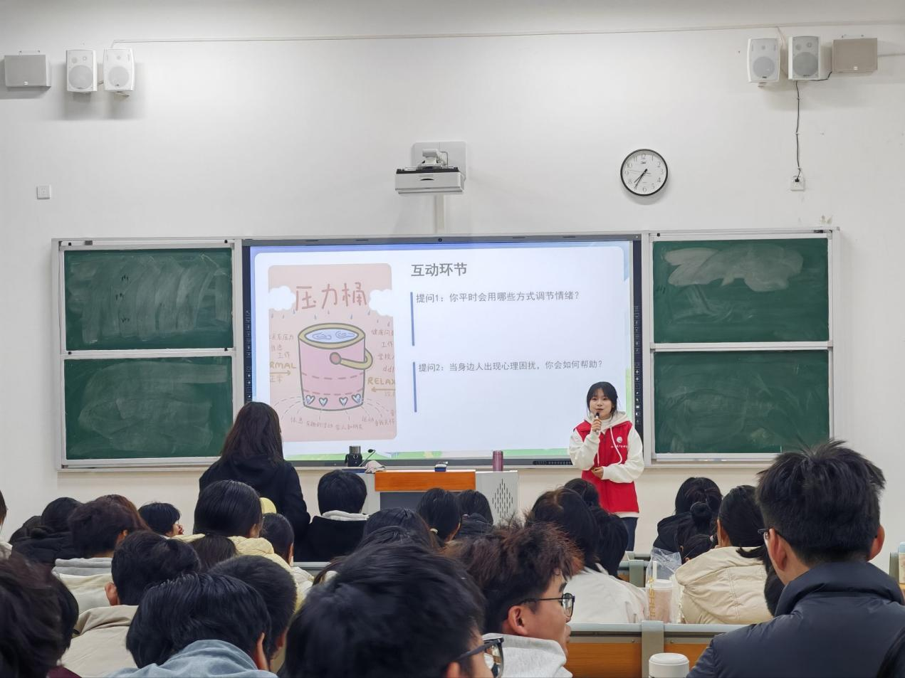 活动前期,宣讲团聚焦临床医学系2025级新生的心理发展特点与学业压力实际,精心设计宣讲内容与互动环节,力求贴近学生、回应关切。活动现场气氛温馨而热烈。“我的减压小妙招”分享环节中,同学们踊跃参与,纷纷举手分享听音乐、运动、倾诉等多种科学有效的压力调适方法;互动问答阶段,大家围绕“如何克服自卑心理”等话题积极提问,宣讲志愿者结合心理学知识耐心解答,引导同学们树立积极心态,增强自我关怀与朋辈支持的能力。整场宣讲内容实用、形式生动,在轻松的氛围中传递心理健康知识。活动结束后,同学们纷纷表示,此次宣讲不仅帮助大家掌握了实用的心理调适技巧,也进一步深化了对心理健康重要性的理解。