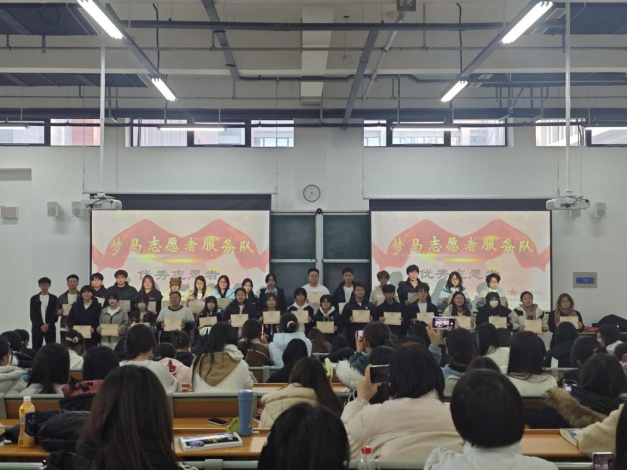 会上,纪洪平老师梳理了梦马志愿者服务队的发展历程,阐释志愿服务的核心意义与时代价值,同时也赞扬了成员们的付出。纪老师强调,志愿服务既是践行社会责任的重要方式,也能磨炼个人意志、增强自制力,并结合自身经历讲述毅力的重要性,引发成员共鸣。随后,总队队长指出近期志愿活动中参与积极性不足、纪律意识薄弱等问题,明确问题根源并提出整改要求。最后,为积极参加活动的同学授予“优秀志愿者”称号并颁发荣誉证书,激励全体成员以更饱满的热情投身志愿服务。