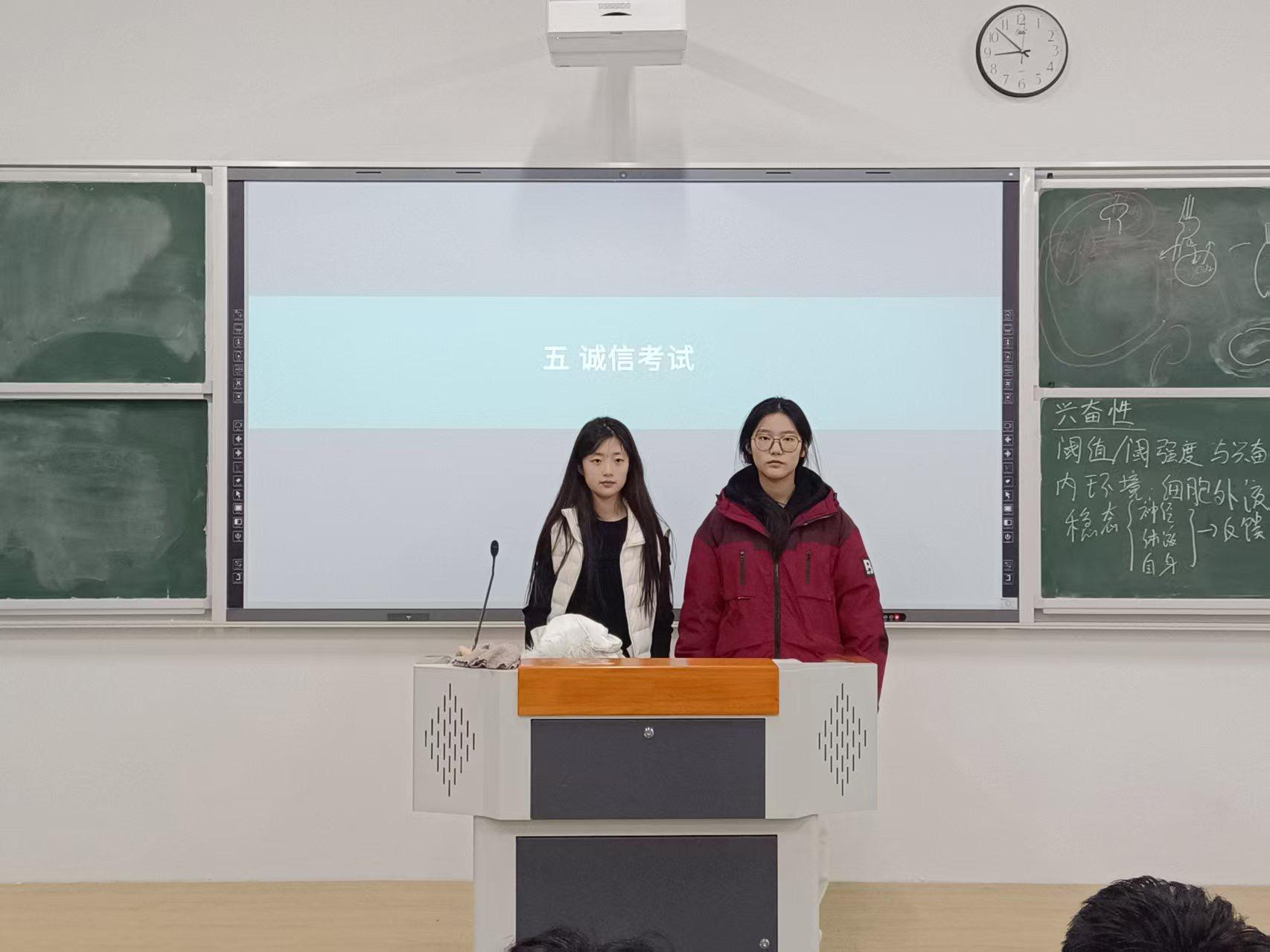 为推进“一站式”学生社区建设,助力2025级学生筑牢诚信应考意识、明晰学习方向、高效备战期末考试,临床医学系于2026年1月7日晚自习,在一号教学楼北楼1B组织开展经验交流暨诚信应考主题活动。活动特邀2024-2025学年两个学期的年级第一名——孟香毓、高思两位同学,走进2025级临床医学专业各班,为学弟学妹们带来干货满满的经验分享。