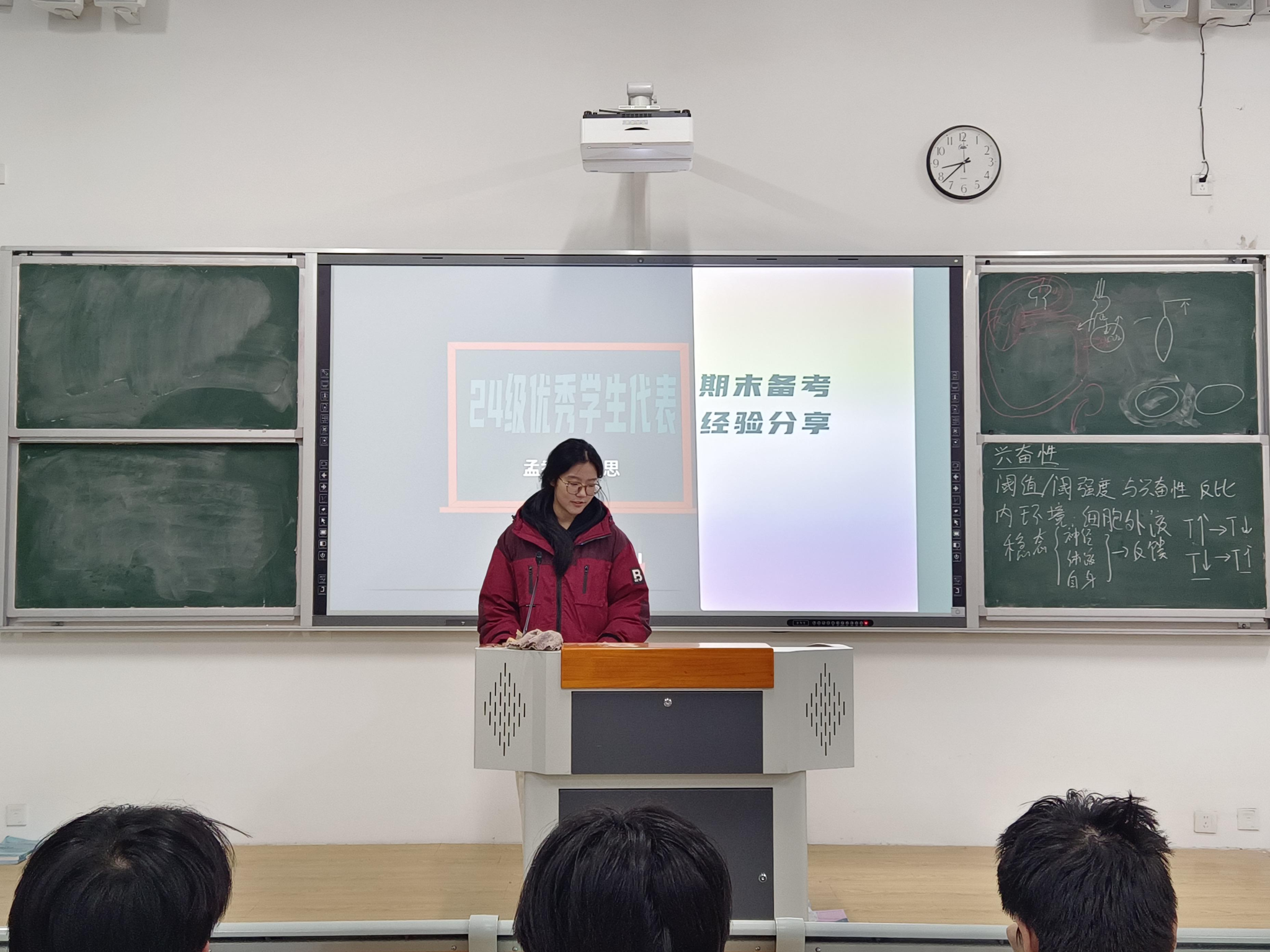 分享会上,两位同学率先展示优异成绩单,直观的数据让学弟学妹备受鼓舞。先是孟香毓同学分享了课程重难点梳理、备考心态调整的经验,提出用默写订正的方式强化记忆;接着高思同学结合考试安排明确复习重点,针对解剖学等基础医学学科,给出“细读课本、理解记忆、不懂就问”的实用建议。两位学姐同时介绍了奖学金评选与评优评先标准,提醒大家兼顾学业与学科竞赛等活动。