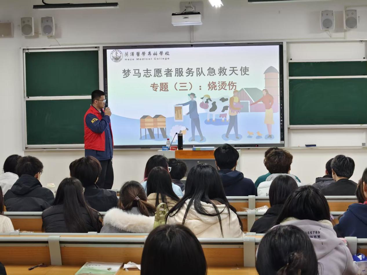 为筑牢校园安全防线,提升学生应急避险能力。临床医学系梦马志愿者服务队急救天使队于2026年3月20日在菏泽医学专科学校临床医学系2024级与2025级中开展“灼见守护践初心,雷锋精神伴我行”为主题的烧烫伤预防与急救科普培训活动。以实际行动践行雷锋精神,将专业医学知识转化为普惠学生的安全技能。