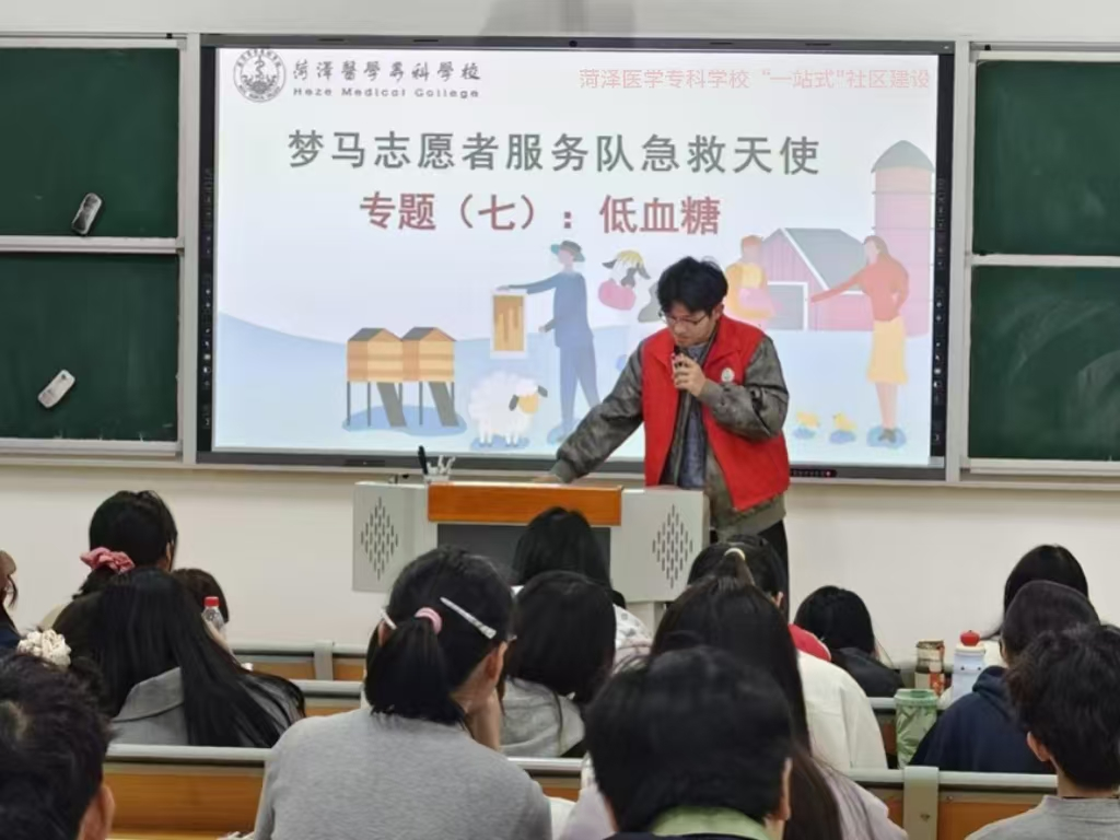 为筑牢校园安全防线,提升学生对健康安全的认识,临床医学系梦马志愿者服务队急救天使队于2026年3月27日在菏泽医学专科学校临床医学系2025级开展“健康守护低血糖,雷锋精神伴我行”主题科普培训活动,以实际行动践行雷锋精神,将专业医学知识转化为普惠学生的安全技能。