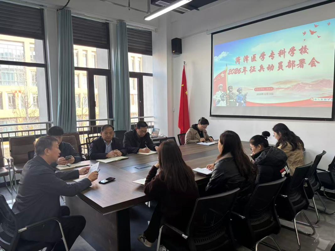 为切实做好2026年征兵工作,进一步激发广大青年学生参军报国的责任感与使命感,营造 “携笔从戎、投身国防” 的浓厚校园氛围,12月15日校武装部组织召开了我校2026年度大学生征兵工作宣传月动员会。校武装部孙战部长、各系书记、副书记参加了本次会议。