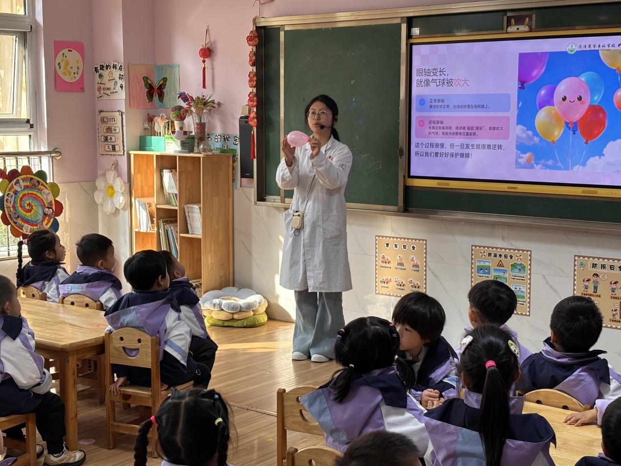 为深入贯彻国家《综合防控儿童青少年近视实施方案》,护佑儿童视觉健康,我校眼视光技术专业师生10月30日走进菏泽市直机关幼儿园开展医学技术系“‘睛’心育才,视见未来”社会实践系列活动,本次以“‘瞳’心探秘,‘睛’彩启航”为主题针对性地向幼儿科普眼健康与近视防控知识。