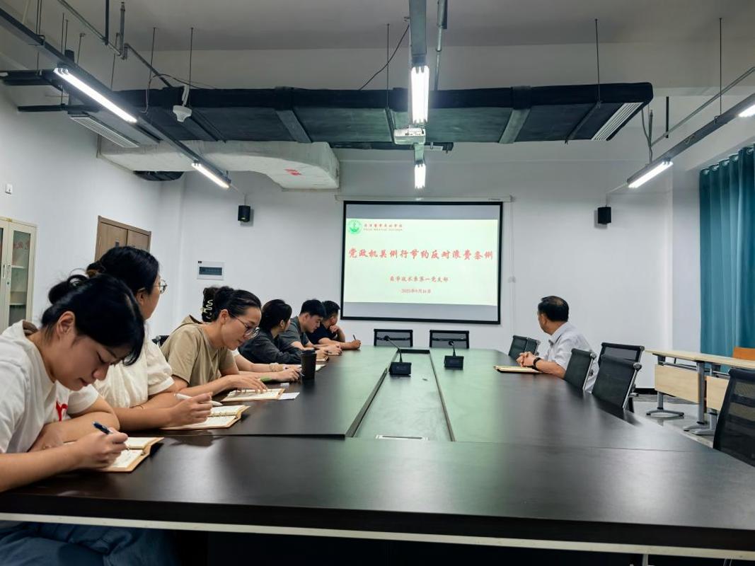最后,会议集中学习了《党政机关厉行节约反对浪费条例》以及习近平总书记关于党政机关带头“过紧日子”的重要指示要求。学习聚焦建设节约型机关、弘扬艰苦奋斗优良传统这一主题,结合学校与系部工作实际,引导全体党员深刻认识厉行节约、反对浪费的极端重要性和现实紧迫性。会议要求,全体党员要率先垂范,从自身做起,从节约一滴水、一度电、一张纸等细节入手,自觉抵制奢靡之风,将“过紧日子”的要求内化为日常习惯和行为准则,营造风清气正、勤俭办事的良好氛围,把有限的资源更多用于推动系部发展和提升育人质量上。