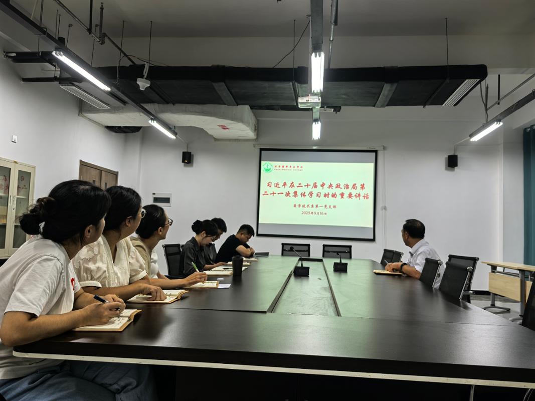 会议严格落实“第一议题”制度,牛家峰同志带领全体党员深入学习了习近平总书记在第二十届中央政治局第二十一次集体学习时的重要讲话精神。通过学习,全体党员深刻领会了党中央关于当前发展形势的重大判断和战略部署,进一步明确了新时代新征程上肩负的职责使命。与会党员围绕讲话精神,结合医学技术专业发展与立德树人根本任务展开了热烈讨论,大家一致表示要自觉将思想和行动统一到党中央决策部署上来,不断提高政治判断力、政治领悟力、政治执行力,将学习成果转化为推动教育教学改革、服务健康中国战略的实际行动。