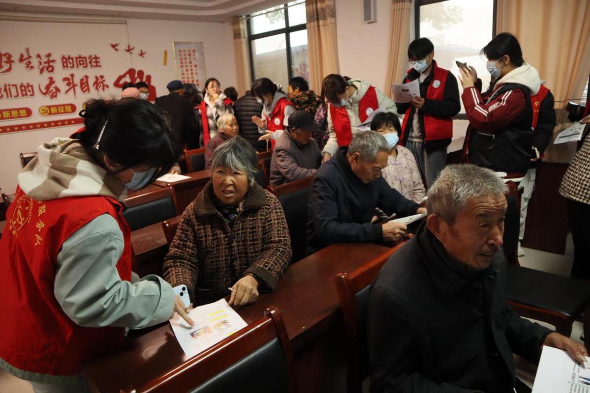 本次活动精准聚焦村民对眼健康以及身体基础健康的需求,依托眼视光技术专业优势为村民提供优质服务。在平继花老师的现场指导下,沐光爱眼社志愿者运用灯箱视力表、电脑验光仪、检影镜等专业设备,为村民逐一开展裸眼视力检测以及屈光状态评估,同步筛查白内障、飞蚊症等常见眼病,并对疑似眼疾人群给出针对性就医建议。燎原志愿者全程主动担当,不仅细致维护现场秩序,耐心引导并搀扶老年村民完成各项检查,还认真倾听老人们的健康诉求,逐一解答关于慢性病管理、日常保健等各类疑问,分发志愿者们制作的医学科普宣传页,精准纠正常见健康认知误区,同时贴心为老人测量血糖,用周到服务为健康检查增添温度。