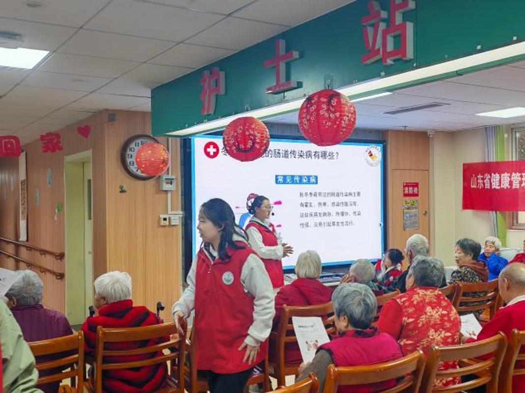 为回应老年群体健康安全需求,普及实用健康知识,10月25日,菏泽医学专科学校燎原志愿者服务队在祝恩聪老师的带领下走进附属医院养护中心,开展“医心护老·科普护航”主题宣讲活动,为现场老年患者及家属送去关怀与温暖。