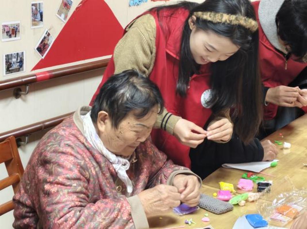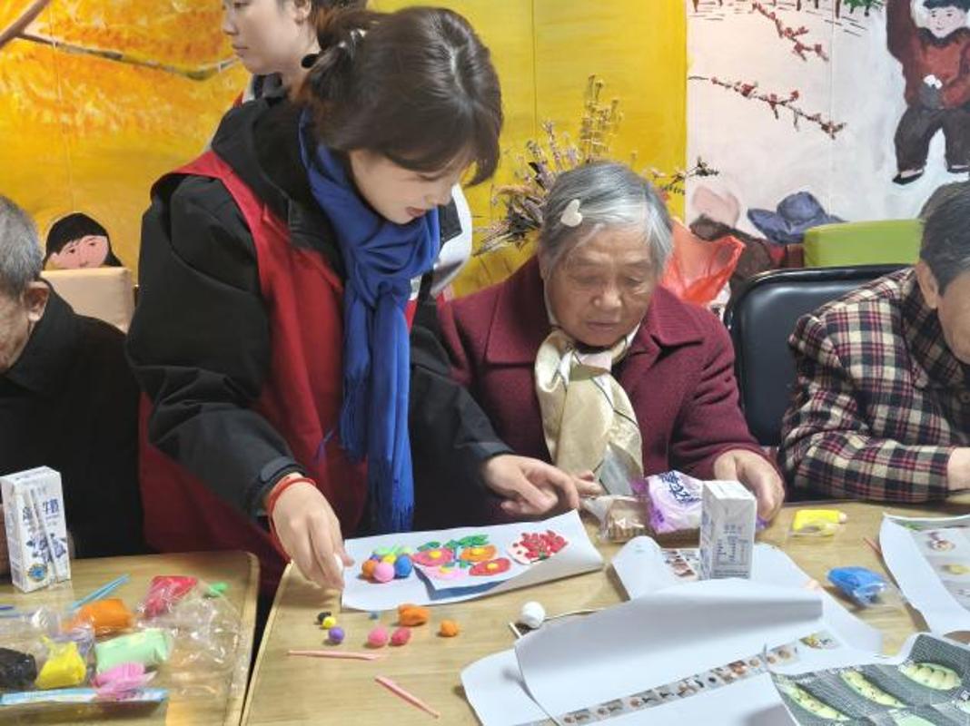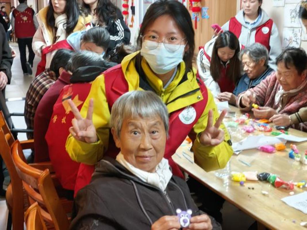 在手工互动环节,志愿者们提前精心筹备现场,让老人们在动手创作中感受乐趣。活动现场,志愿者们一对一、手把手指导老年人并且耐心讲解每一个步骤,现场满是欢声笑语,老人们手捧自己的作品,与志愿者们并肩而立,在镜头前留下灿烂的笑容。