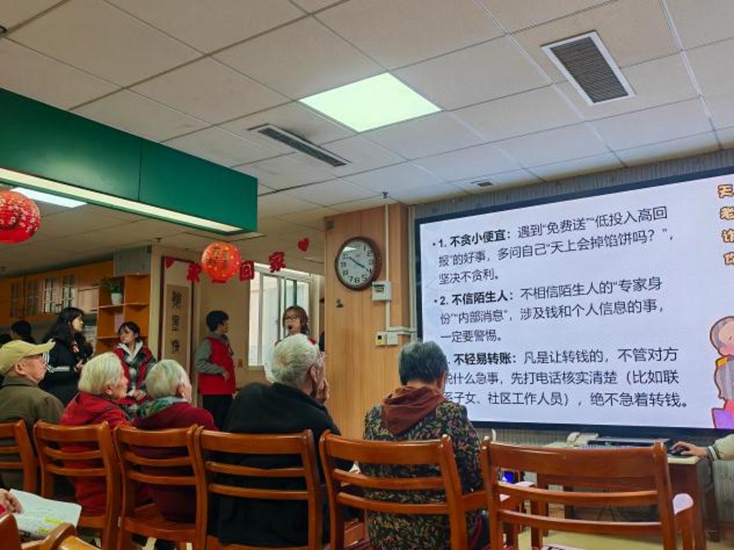 宣讲环节聚焦四大核心需求,内容实用且针对性强。第一组志愿者讲解老年跌倒预防方法,并分步演示跌倒后的紧急处理流程,现场互动频繁,反响热烈;第二组分析冬季常见流行病的传播途径,传授预防要点;第三组详解老年诈骗常见手段与防范技巧,帮助老年人筑牢“反诈防线”;第四组围绕“三高”人群饮食禁忌与健康原则展开讲解,指导老年人通过科学饮食控制病情。宣讲过程中,老年听众结合自身情况积极提问,志愿者们耐心解答,用通俗易懂的语言拆解专业知识,确保疑问得到有效回应。