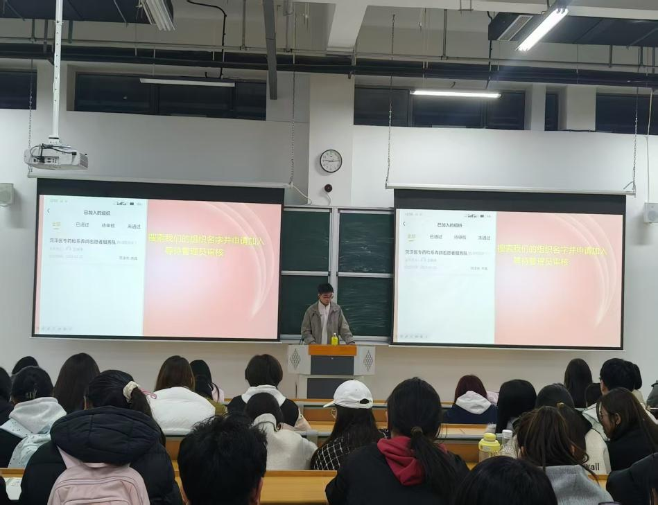 为规范志愿者注册流程,明确志愿时长管理规范,提升志愿服务质量,2025年10月30日,药学与检验系青鸽志愿者服务队组织全体队员开展专题培训会议。
