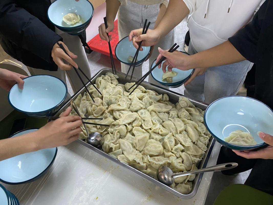 活动开始之前,老师们带领大家采购食材、做好筹备。活动现场更是暖意融融,师生分工协作揉面、擀皮、包饺子,老手手法娴熟,新手虚心求教,大家边忙活边唠家常、谈学习,欢声笑语不断,温馨氛围驱散了冬日寒意。一盘盘热气腾腾的饺子陆续出锅,鲜香气息弥漫全场,咬下一口,皮薄馅鲜的暖意从舌尖蔓延至心底,这既让大家感受到集体温暖、增强了系部凝聚力,也进一步拉近了师生距离。