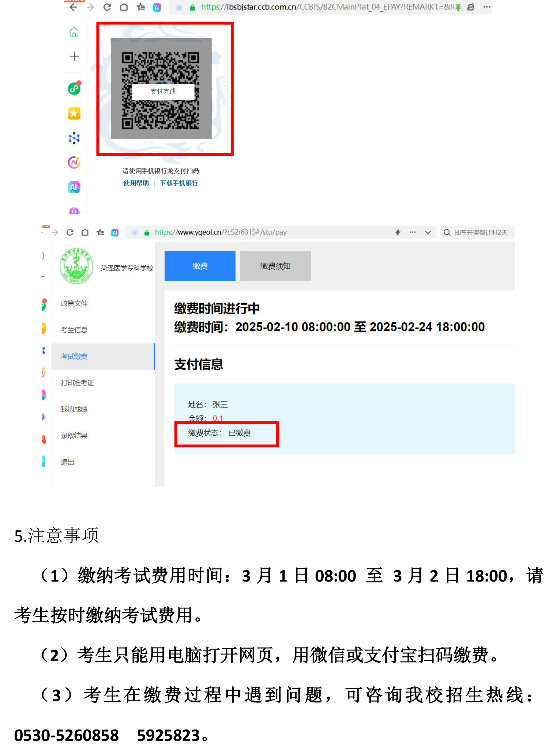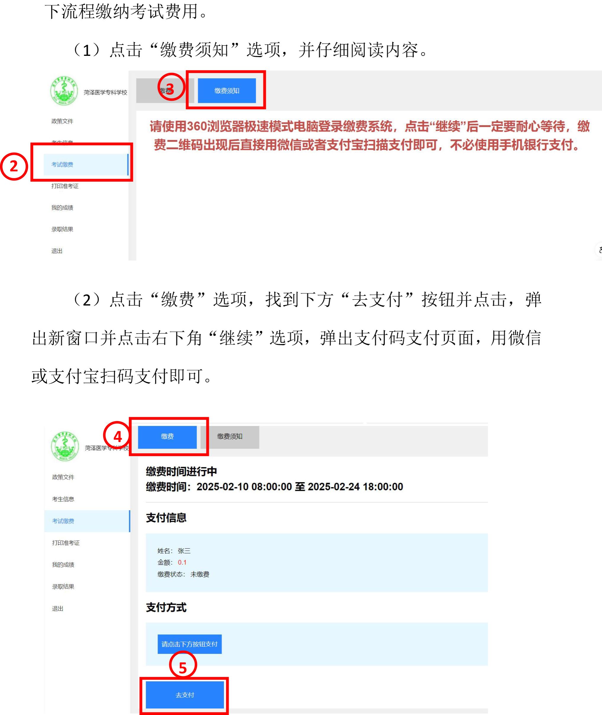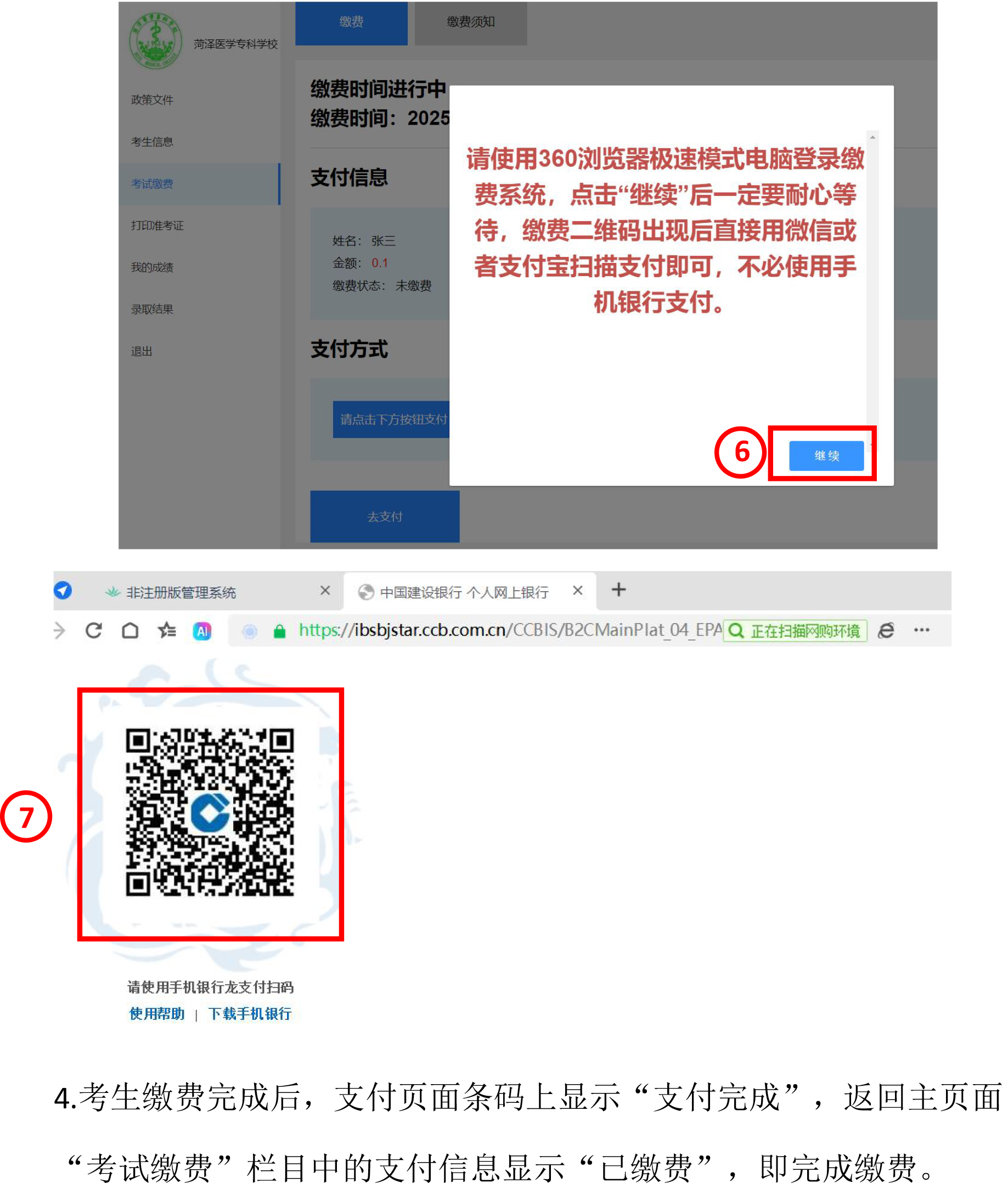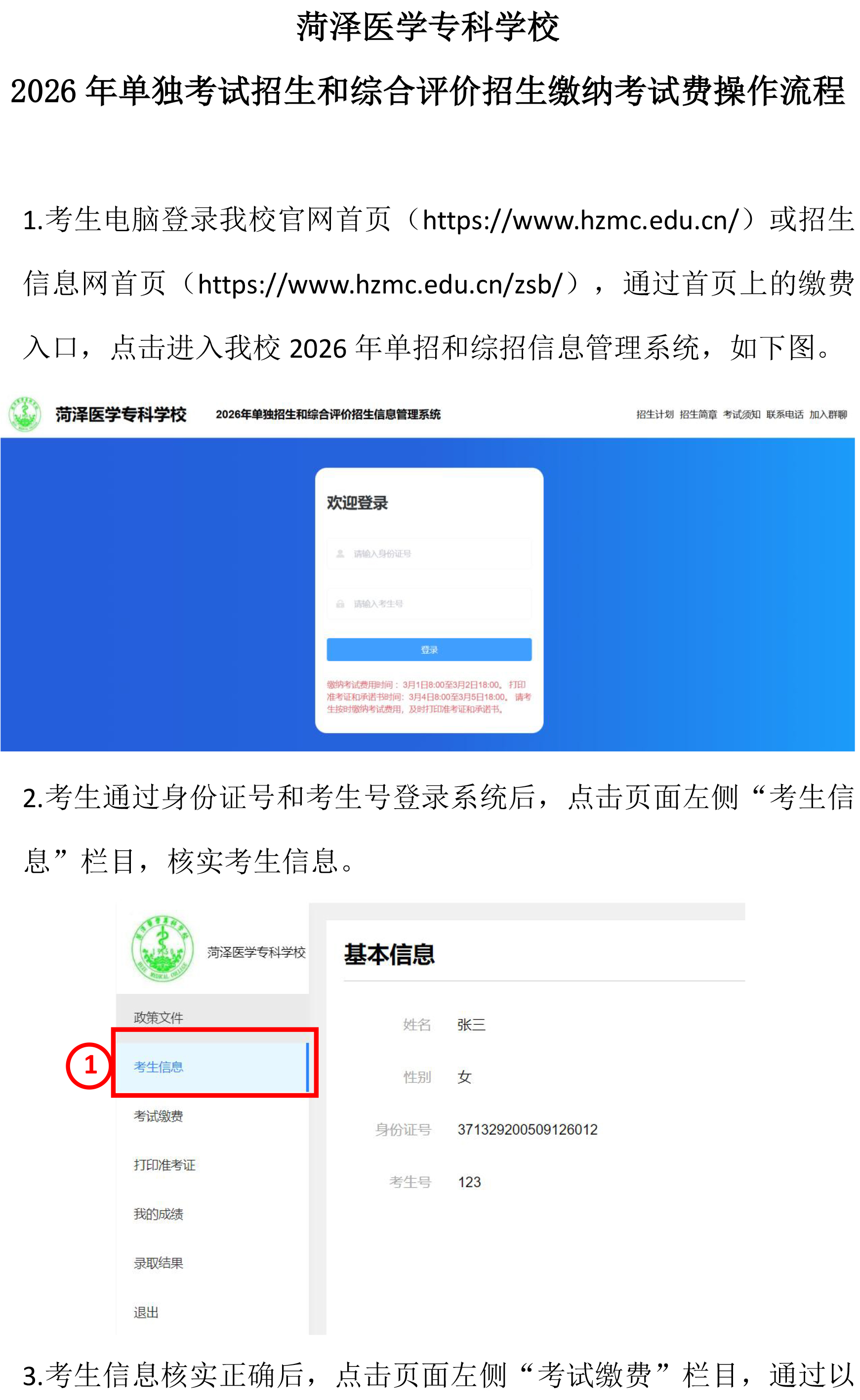 2026年单招和综招缴纳考试费操作流程