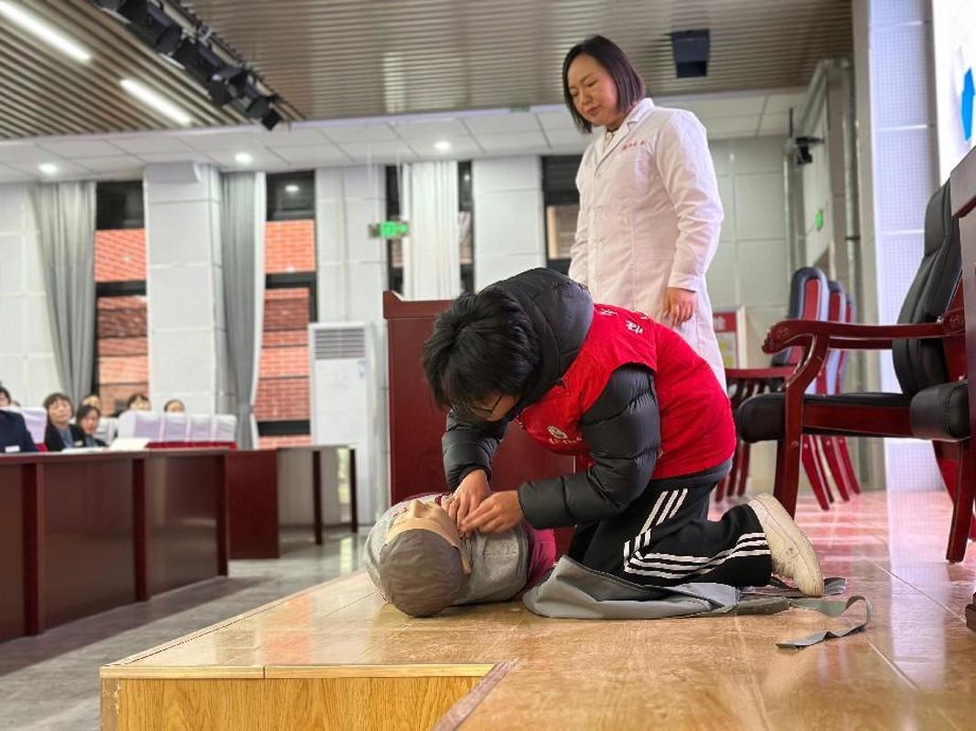 在实操环节中,参训人员分组练习胸外按压、人工呼吸及气道异物梗阻解除手法。临床医学系师生团队全程指导,通过“手把手”教学、反复演练与实时答疑,帮助参训人员掌握关键急救技能。现场气氛热烈,大家踊跃参与,动手能力与应急意识得到了有效提升。