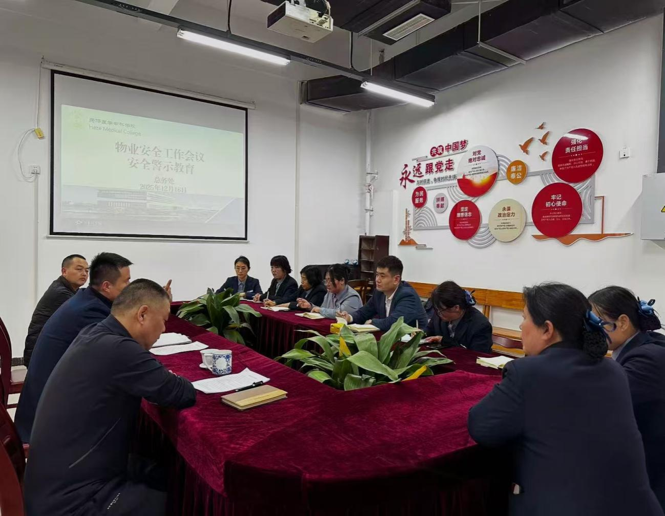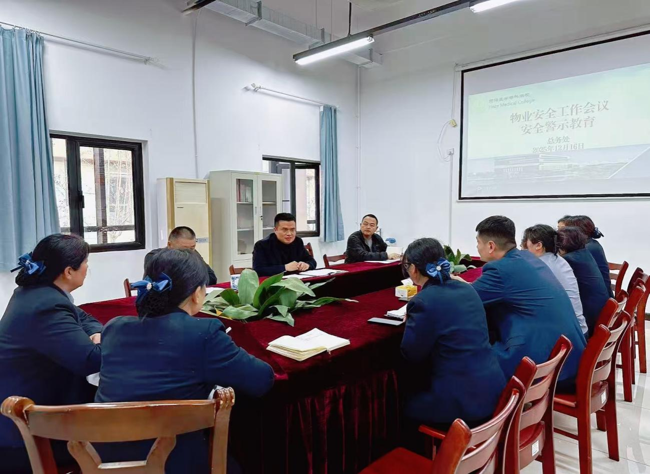 为进一步夯实物业管理安全基础,防范化解校园安全风险,保障全校师生生命财产安全与教学秩序稳定,12月16日,我校总务处组织召开物业安全工作专题会议。总务处相关工作人员、学校服务物业公司项目经理和安全管理员参加会议。会议由总务处负责人武庆杰主持。