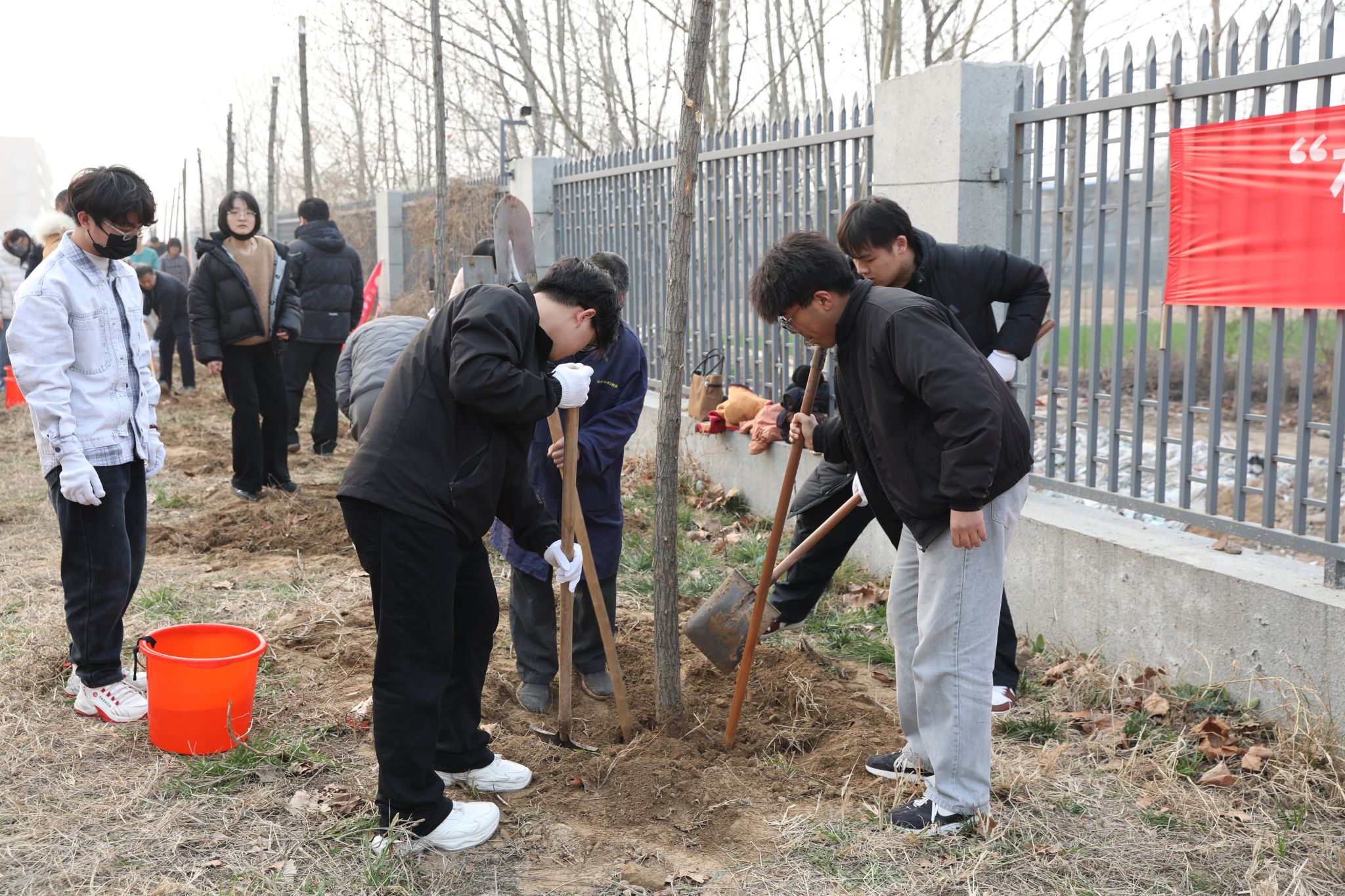 植树现场秩序井然、气氛热烈,全体参与人员分工明确、协作高效,严格按照挖坑、扶苗、填土、压实的规范流程操作,每一个环节都认真细致、配合默契。大家以实际行动践行绿色发展理念,成功栽种下多棵树苗,为校园增添了新的生机与活力。