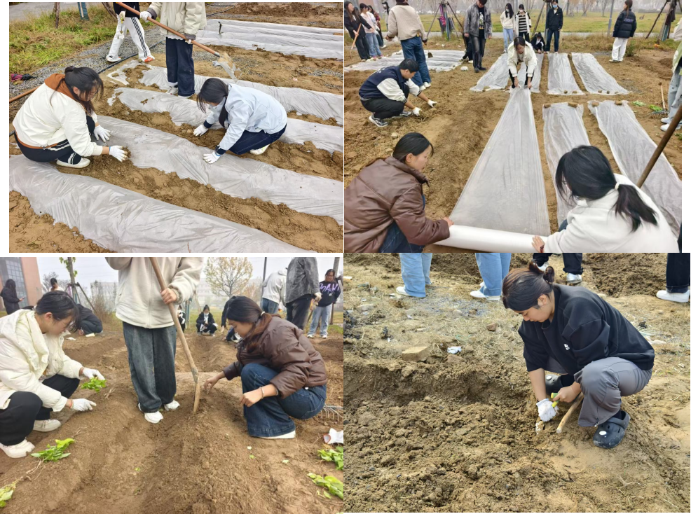 此次百草园建设精选百合、黄精、黄芩、玉竹、丹参、桔梗等10余种药用植物,既是专业教学的“活教材”,也是劳动教育的“实践场”。活动现场,中药教研室教师结合《药用植物栽培技术》课程重点,手把手指导学生辨识药材特性:“黄芩喜干燥,种植时要注意起垄防涝”“玉竹的根茎埋深需控制在5厘米左右,才能保证出苗率”。学生们分组协作,从挥锹翻地、弯腰除草,到拉线作畦、精准起垄,再到轻扶幼苗、细心移栽,一步步将课堂上的理论知识,化作掌心可触的实践技能,在泥土的清新芬芳里,悄然触摸到中医药 “顺时应地、植根自然”的本源密码。