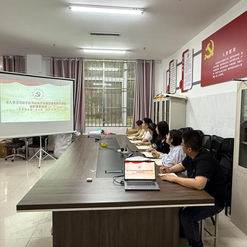 支部书记杨茜同志从党的百年奋斗历程、解决大党独有难题、党实现中心任务三个维度阐释了加强党的纪律建设的历史、现实和实践逻辑。她指出,全体党员要在党纪学习教育中走在前列、作出表率。杨茜同志表示,要进一步增强纪律意识,深刻领悟纪律严明是中国共产党的本质属性和内在要求,是解决大党独有难题的现实需要,是我们党不断从胜利走向胜利的重要保障;要深刻把握新时代纪律建设的特点和规律,以学纪、知纪、明纪、促进遵纪、守纪、执纪;要牢固树立制度思维、系统思维、法治思维、底线思维、自觉接受监督思维,把党纪党规作为规范自身言行的“戒尺”,始终做到忠诚干净担当,以严明的纪律确保同以习近平同志为核心的党中央保持高度一致,为推动学校党建和事业高质量发展提供坚强的纪律保障。