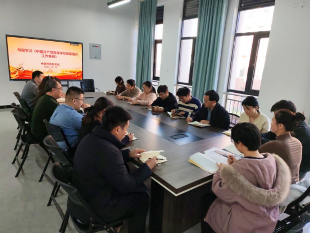 大家结合中医药系工作实际交流体会,一致认为《条例》是新时代高校基层党建的基本遵循,要严格落实 “五个到位” 要求,强化党总支政治功能,健全党政协同工作机制,把党的领导贯穿中医药人才培养、科学研究、文化传承等各方面,让基层党组织成为推动事业发展的坚强战斗堡垒。