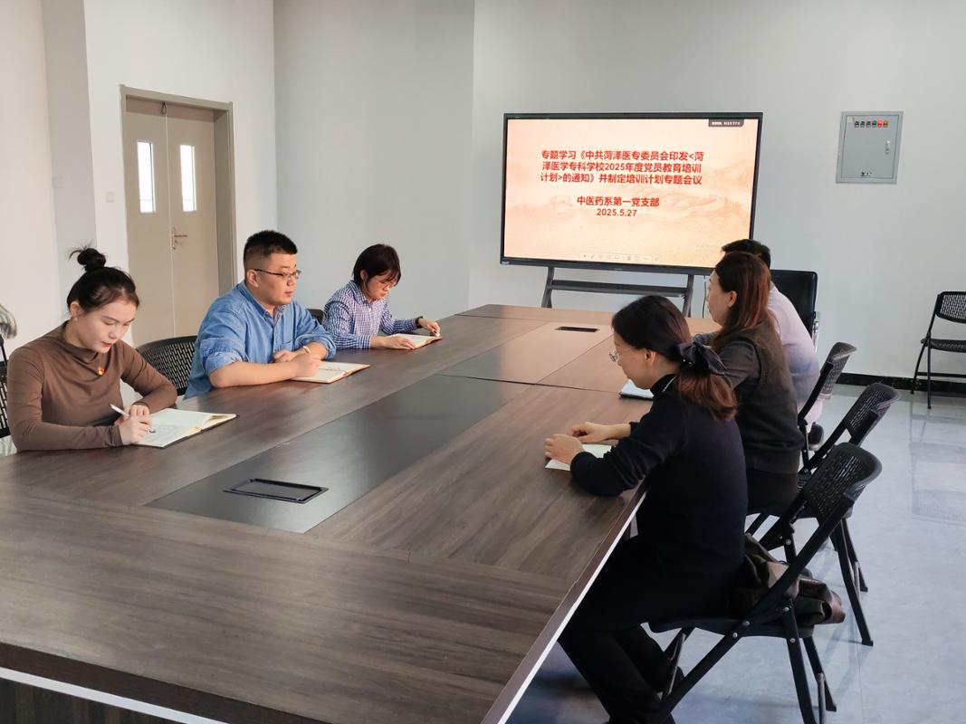 为深入学习贯彻习近平新时代中国特色社会主义思想和党的二十大精神,落实全面从严治党要求,强化党员队伍建设,5月27日,中医药系第一党支部召开专题会议,集中学习《中共菏泽医专委员会印发 <菏泽医学专科学校 2025 年度党员教育培训计划> 的通知》并部署相关工作,同时以 “锲而不舍落实中央八项规定精神,以优良党风引领社会民风”为第一议题,组织学习《求是》杂志相关刊文。会议首先传达学习了学校党委 2025 年度党员教育培训计划的核心内容。党总支书记杨茜详细解读了计划中关于培训目标、主要任务、培训方式及保障措施等方面的要求,强调党员教育培训是党的建设的基础性工程,对提升党员政治素养、增强党性修养、强化履职能力具有重要意义。结合中医药系工作实际,会议明确了系部党员教育培训的具体落实举措:一是紧扣学校计划要求,制定系部个性化培训方案,突出政治理论学习与中医药专业特色相结合;二是创新培训形式,采用集中学习、专题研讨、实地研学、线上线下融合等多种方式,增强培训的针对性和实效性;三是聚焦党员教师、学生党员等不同群体需求,分类施策开展培训,引导党员在教学科研、人才培养、志愿服务等岗位上发挥先锋模范作用,为中医药系高质量发展提供坚强组织保障。